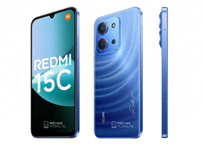 据荷兰媒体Nieuwe Mobie曝光的渲染图,REDMI 15C延续了上代标志性的水滴屏+直角边框设计,屏幕尺寸升级至6.9英寸LCD屏,支持120Hz刷新率,但分辨率仍维持在HD+级别,这一选择显然是出于功耗控制的考量。