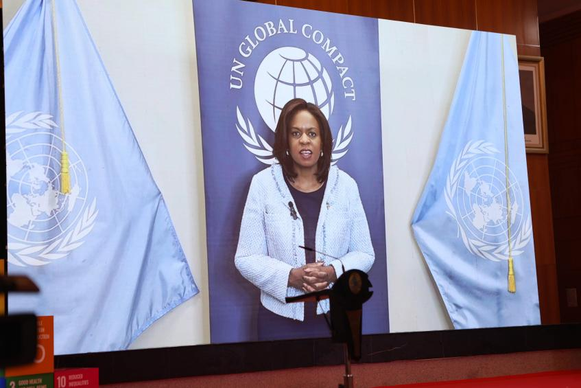 (联合国全球契约组织总干事Sanda Ojiambo视频致辞)