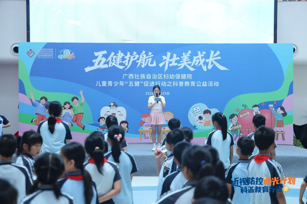 4月25日上午,由广西妇幼保健院(广西儿童医疗中心)主办的“‘五健’护航 壮美成长”科普教育公益活动在广西儿童医疗中心学术报告厅举行,其间同步举办近视防控追光行动。